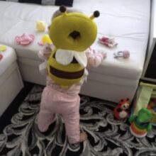This little bee backpack has literally been a life saver. My 10 month old has been wearing it consistently for the past month and a half and it has saved him from smacking the back of his head on our tile floors too many times to count. He was a little interested in trying to pull it off when we first put it on, but now he wears it all the time and doesn’t seem to even notice it is there. Such a simple, cheap, and effective solution for a common baby issue.