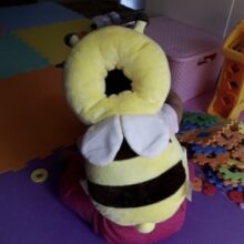 Our busy bee is more than a cute cushion — it’s a safety device that protects the head, shoulders, neck, and back of your child in the event of a fall. A donut-style head cushion and plush, wide body help absorb impact and sharp corners. Don’t compromise on safety with this uniquely-designed, made-for-safety cushion that wears just like a backpack for impact protection where it matters most.