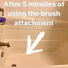 I just used this to clean some of the tile in my kitchen, using just some vinegar dawn and baking soda. I’d normally use bleach and a toothbrush to get the same result, but with much more effort and sweat! This product is very easy to use! And makes cleaning more fun. It takes just a few seconds per tile. I’m a petite woman. The only difficult part is pressing on the button of the drill for so long, and you will need to guide the drill with both hands. See the pic for the before and after. One pic shows left side after cleaning with this product and right side before. Can’t wait to finish the rest of the floor!