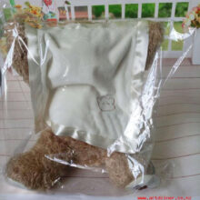 The peek a boo bear was an adorable addition to my 6 month old's collection of stuffed animals. The game of peek a boo is one of her favorites but, she is quite the aggressor LOL. She no longer wished to play the game with the bear and decided she wanted his blanket. Mr. Bear went to cover his eyes and my 6 month snatched his blanket from detaching it from one of his cute unsuspecting paws. It's an easy fix. The voice over is so precious. It would be awesome if there was an option to order the bear with your child's name in place of "baby." I'd definitely order this product for future babies in my family. It's a keeper. Thank you for producing an adorable keepsake!!