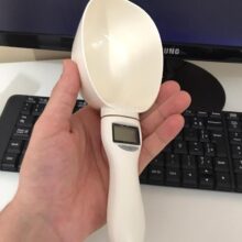 As far as digital scoops go, this does the job for measuring our dog food. The scoop is easy to scoop and clean. Other reviews mentioned it’s plasticy… can’t help getting away from that as it is plastic. It’s not going to hold a lot of weight but for the size of scoop you wouldn’t be scooping heavy stuff so imagine it will be durable. Measurement compared with our digital scale within a few grams so good enough for what we need.
