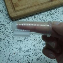 Hold the brush on your index finger and hold it with your thumb and middle finger as you brush your pet’s teeth. If that doesn’t work, you can roll a piece of paper towel into the brush and insert your finger back in for a more snug fit.