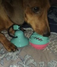 I have a dog who is fluffy and adorable, but is also a power-chewer and needs toys that are durable and won't get destroyed in a day! So I bought this dog toy. It definitely helps to keep my dog busy for long periods of time. Once getting the item, I followed the instructions and opened the strip gap of dispensing ball to put dog kibble or treats inside. Then I stuck the suction cup on the floor (make sure the floor is clean), and let my dog go to town. When my dog plays with it, the food comes out, which is fun and rewarding for her. I like the fact that this toy is made of high qual