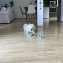 My dog loves this toy! Just add a little water to the end so that it suctions to the floor and will keep the dog entertained for hours!